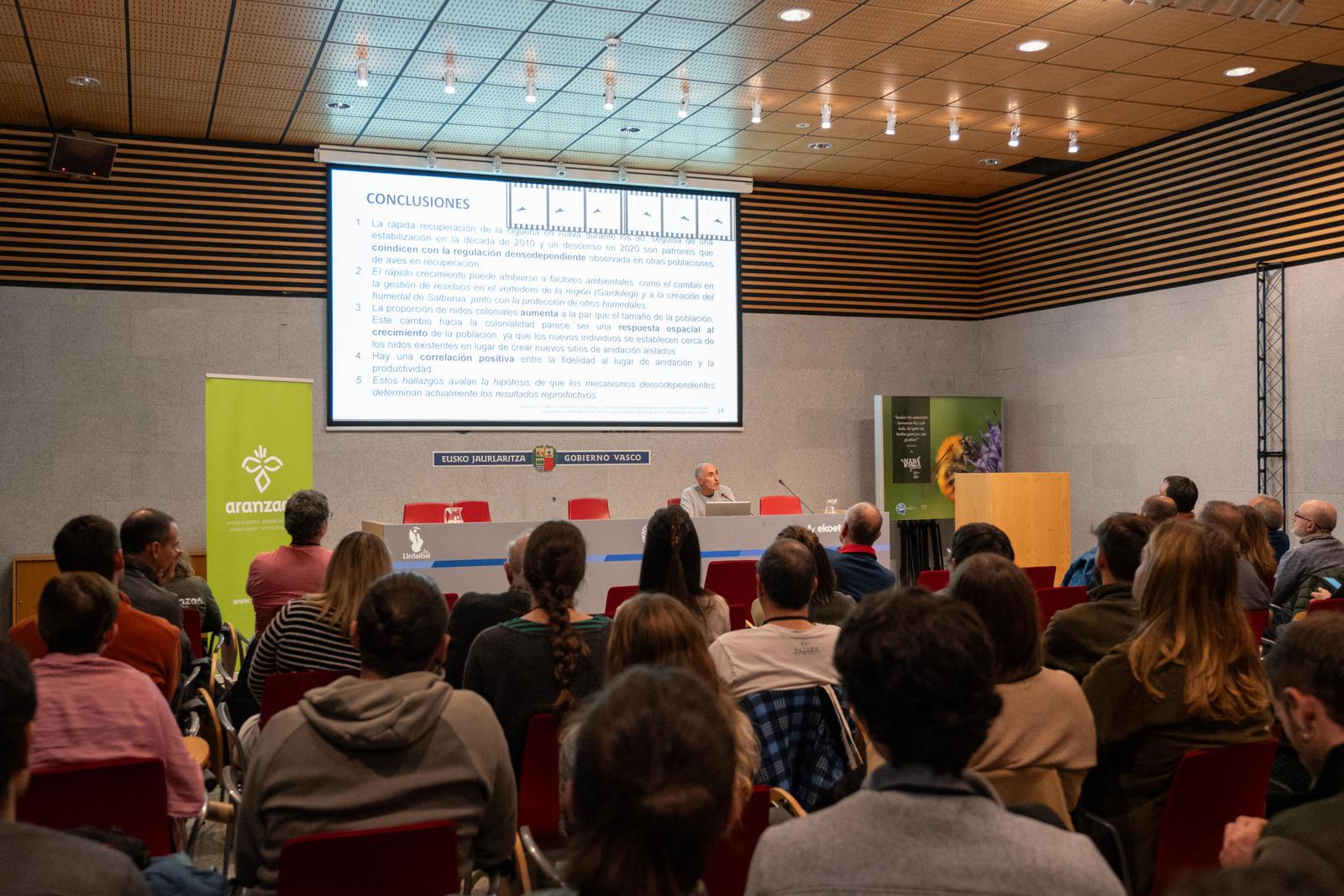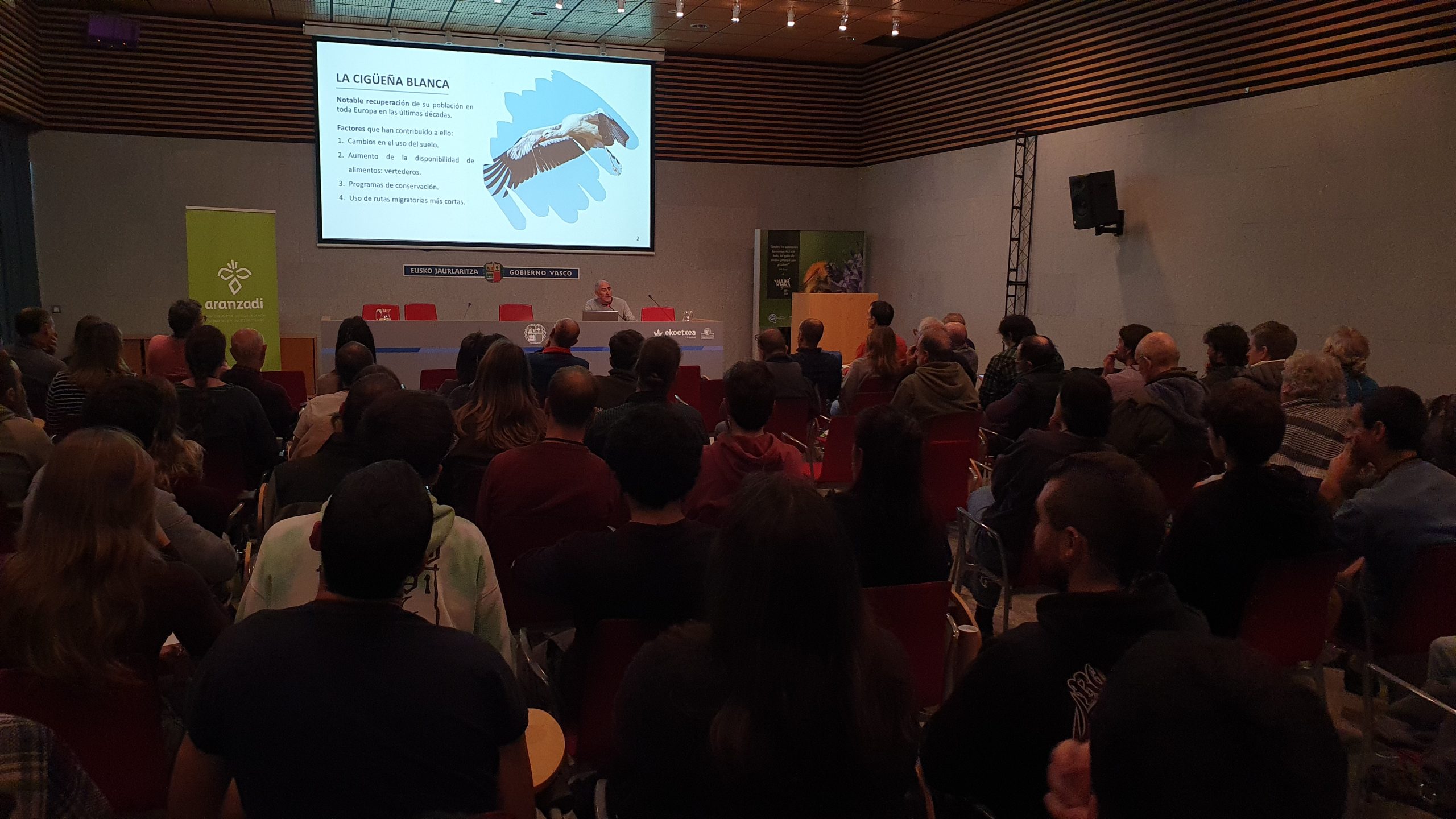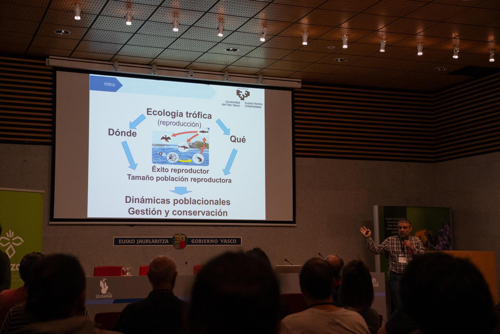 El congreso comenzó el sábado por la mañana con la conferencia inaugural que impartía Álvaro Camiña: Retos para la conservación de las aves de Euskadi. Energía renovable y aves. A continuación, a lo largo de todo el día del sábado, se trataron diversos temas relacionados con la ornitología, divididos en diferentes bloques de conferencias. El primero estuvo dedicado a la conservación y gestión de la avifauna y el siguiente a las dinámicas poblacionales de varias especies de aves del País Vasco. También tuvimos la oportunidad de conocer algunos de los últimos estudios ciéntificos que se están llevando a cabo en nuestro país de manos de jóvenes investigadores que presentaron sus trabajos y nos mostraron el estado de la investigación ornitológica actual en Euskadi desde diferentes enfoques.