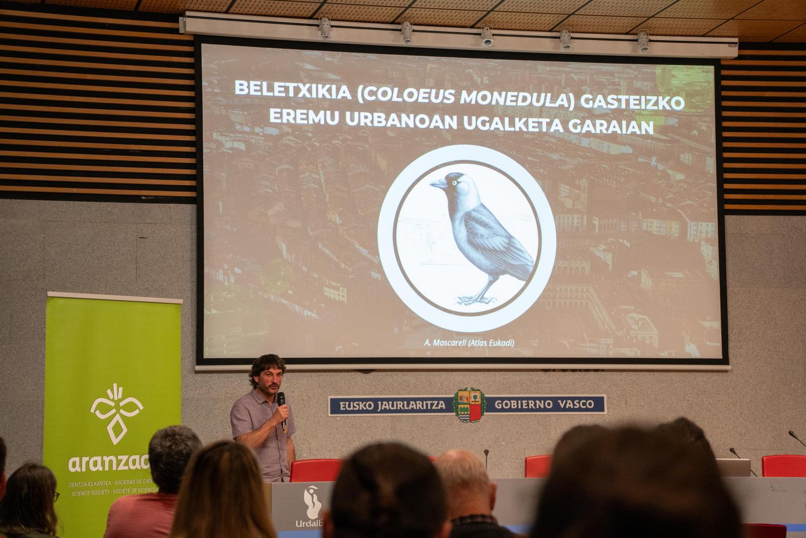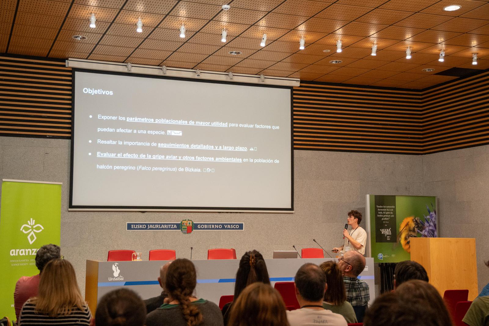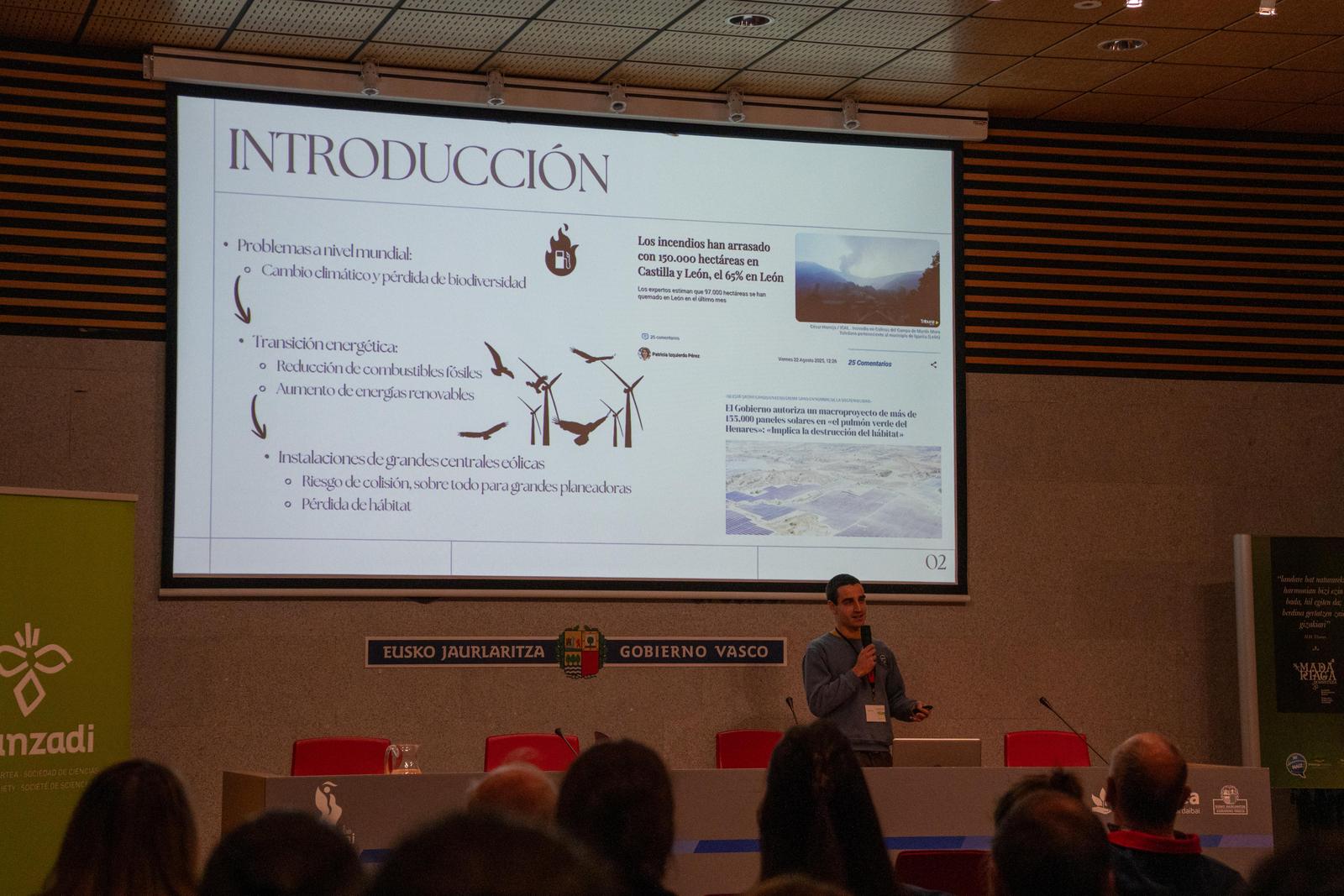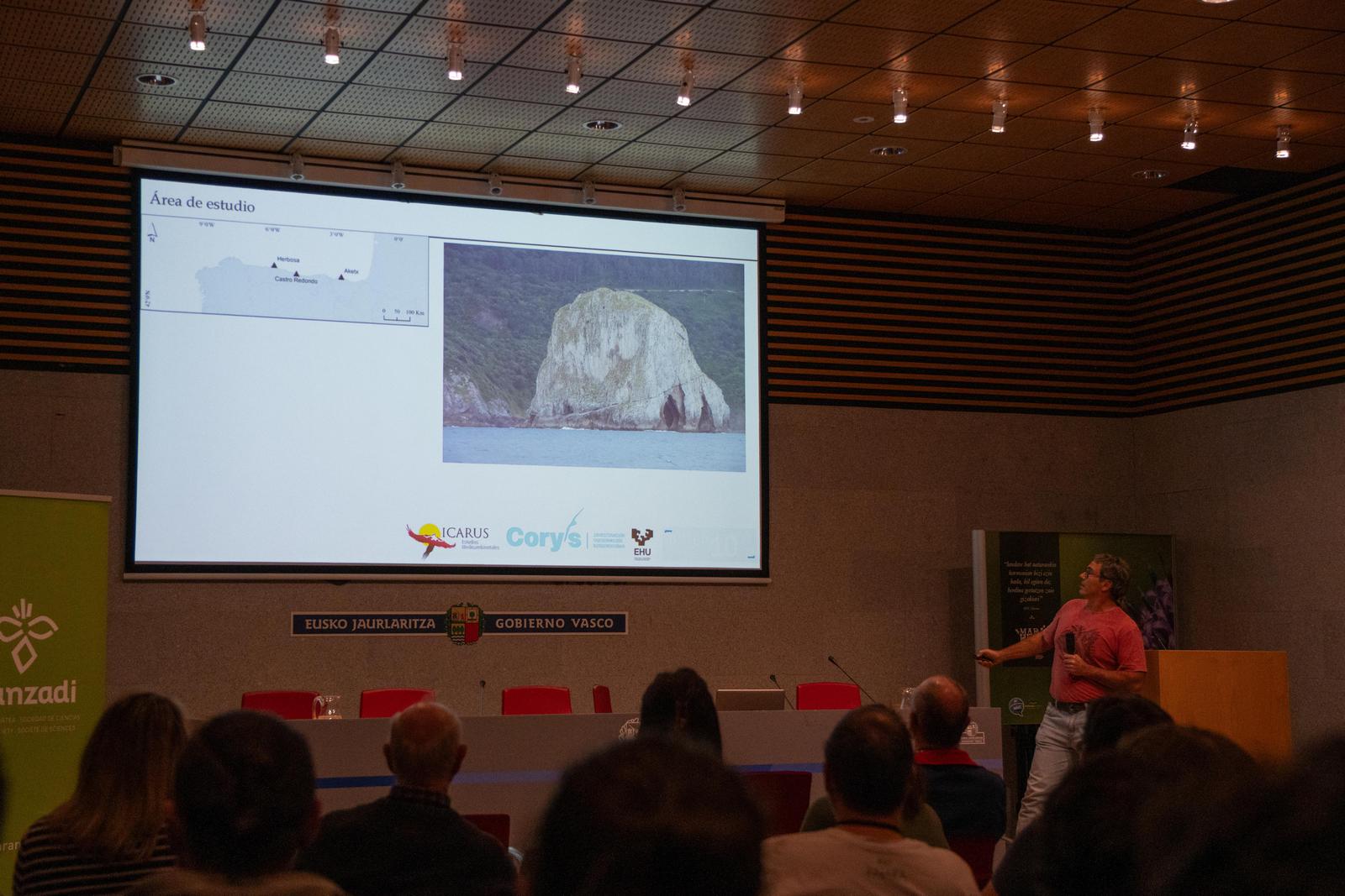 El congreso comenzó el sábado por la mañana con la conferencia inaugural que impartía Álvaro Camiña: Retos para la conservación de las aves de Euskadi. Energía renovable y aves. A continuación, a lo largo de todo el día del sábado, se trataron diversos temas relacionados con la ornitología, divididos en diferentes bloques de conferencias. El primero estuvo dedicado a la conservación y gestión de la avifauna y el siguiente a las dinámicas poblacionales de varias especies de aves del País Vasco. También tuvimos la oportunidad de conocer algunos de los últimos estudios ciéntificos que se están llevando a cabo en nuestro país de manos de jóvenes investigadores que presentaron sus trabajos y nos mostraron el estado de la investigación ornitológica actual en Euskadi desde diferentes enfoques.